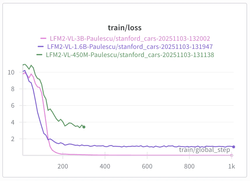 - the LFM2-VL-3B model has the lowest loss, and